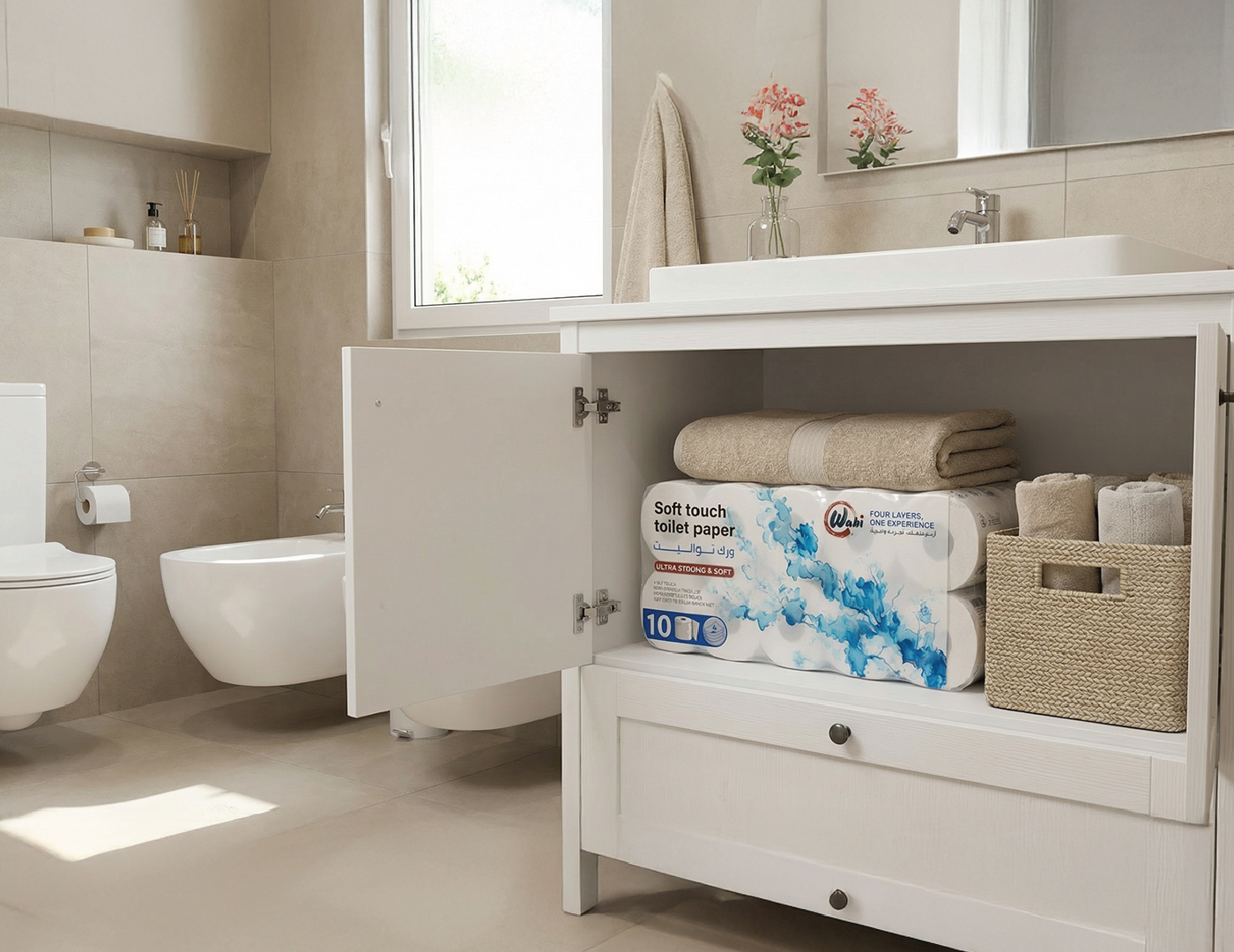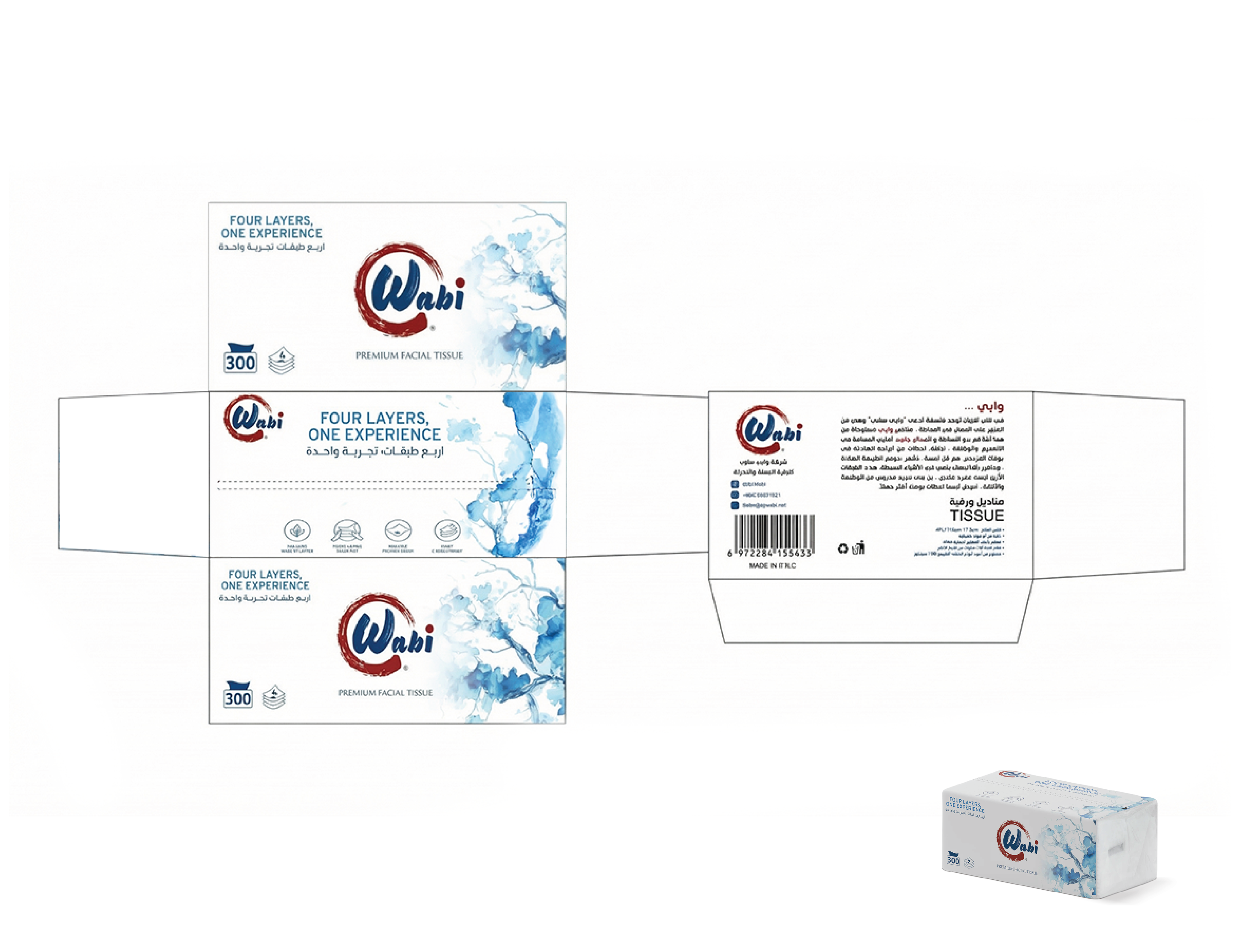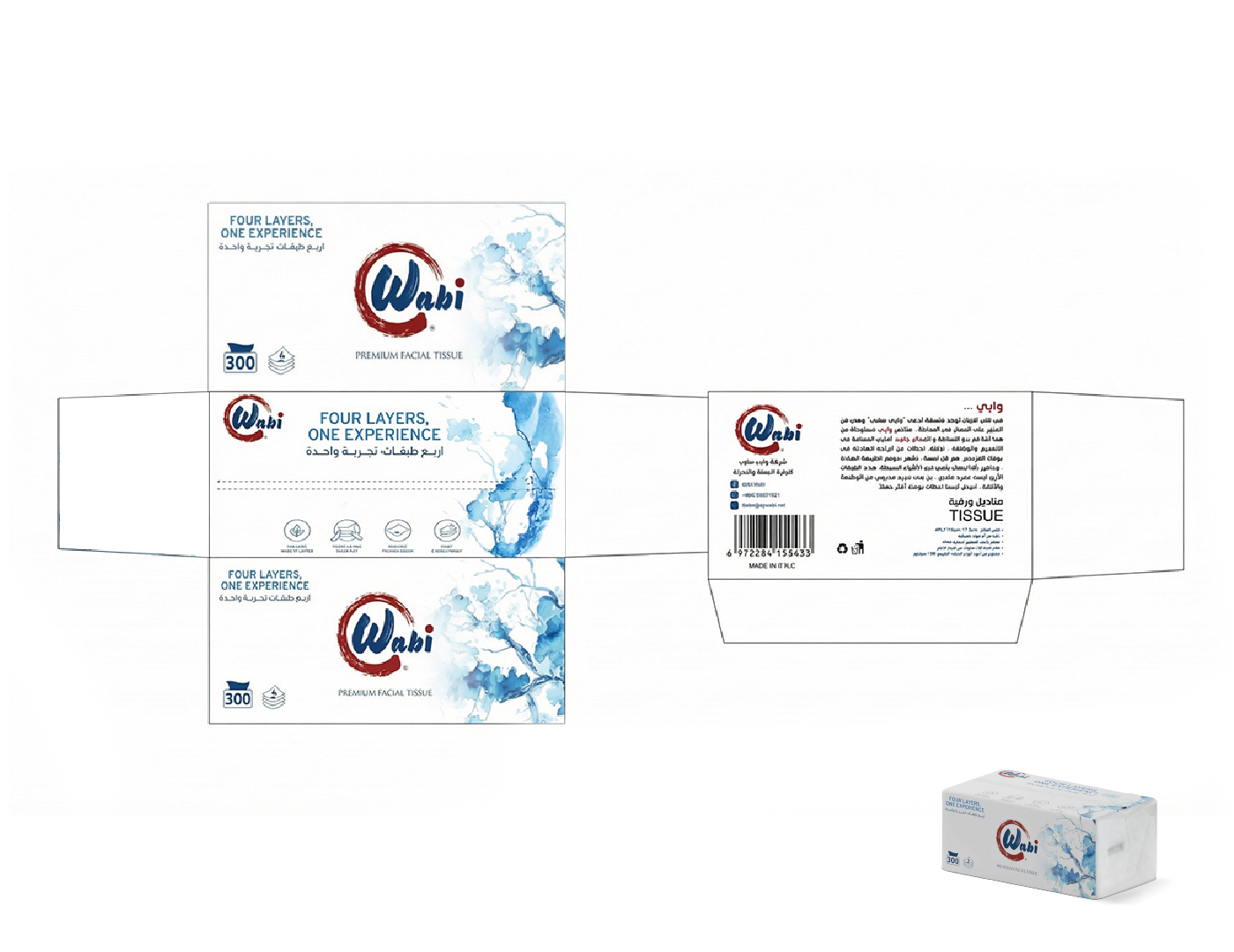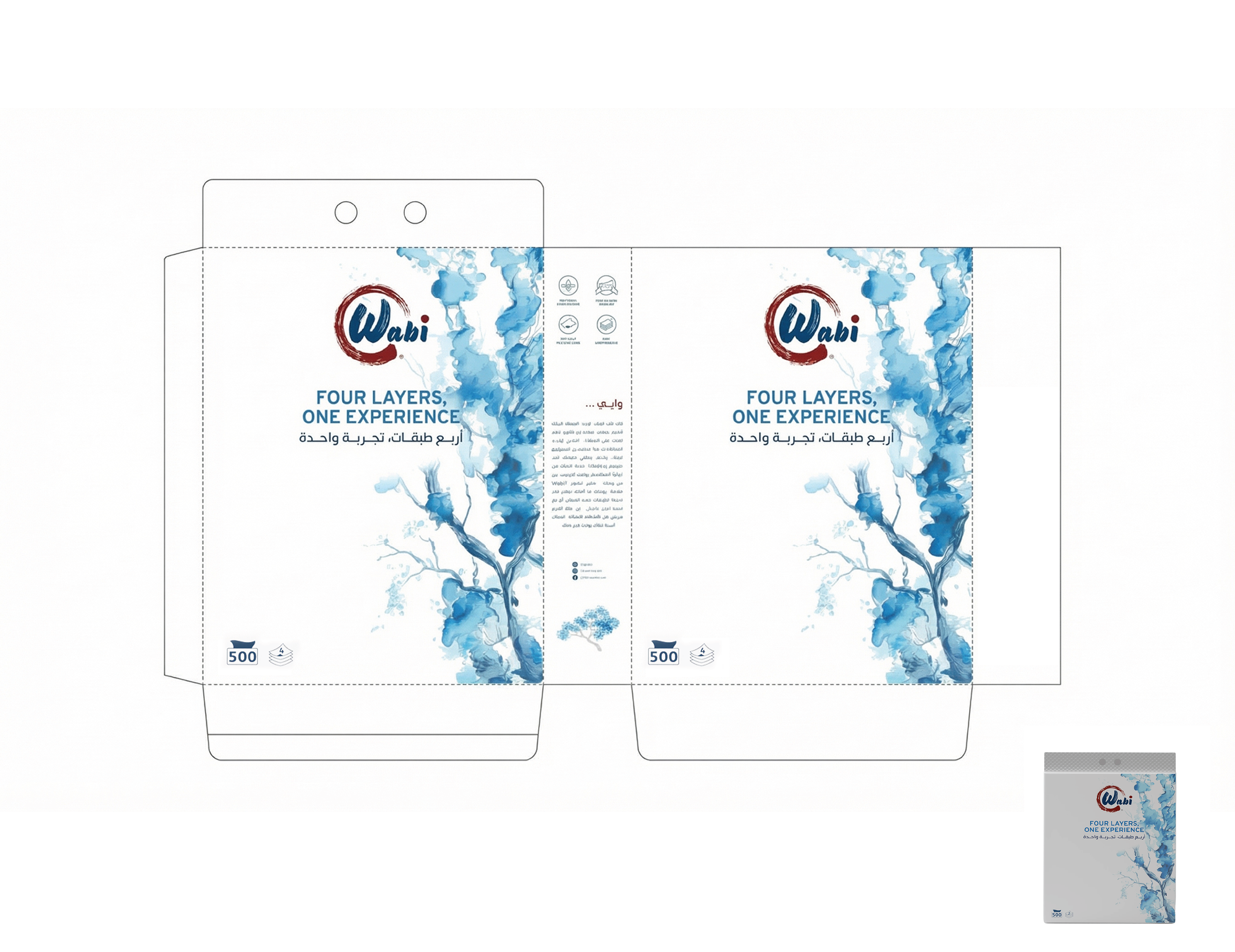 Wabi — Brand Overview Essence Quiet comfort for everyday life. Wabi blends the Japanese wabi-sabi philosophy—beauty in simplicity and honesty—with a modern Kuwaiti spirit. The result is premium paper products that feel calm, clean and considered. Purpose Make daily moments softer, safer, and simpler—at home, in the car, and on the go. Brand Promise Pure, soft and reliably strong tissues that respect skin, space, and nature. Positioning For households and modern lifestyles in Kuwait and the GCC who want premium hygiene products without fuss, Wabi delivers a four-layer experience of softness and strength, inspired by Japanese minimalism and designed for everyday life. Unlike scented or flimsy alternatives, Wabi products are unscented, skin-friendly, lint-free and strong when wet.